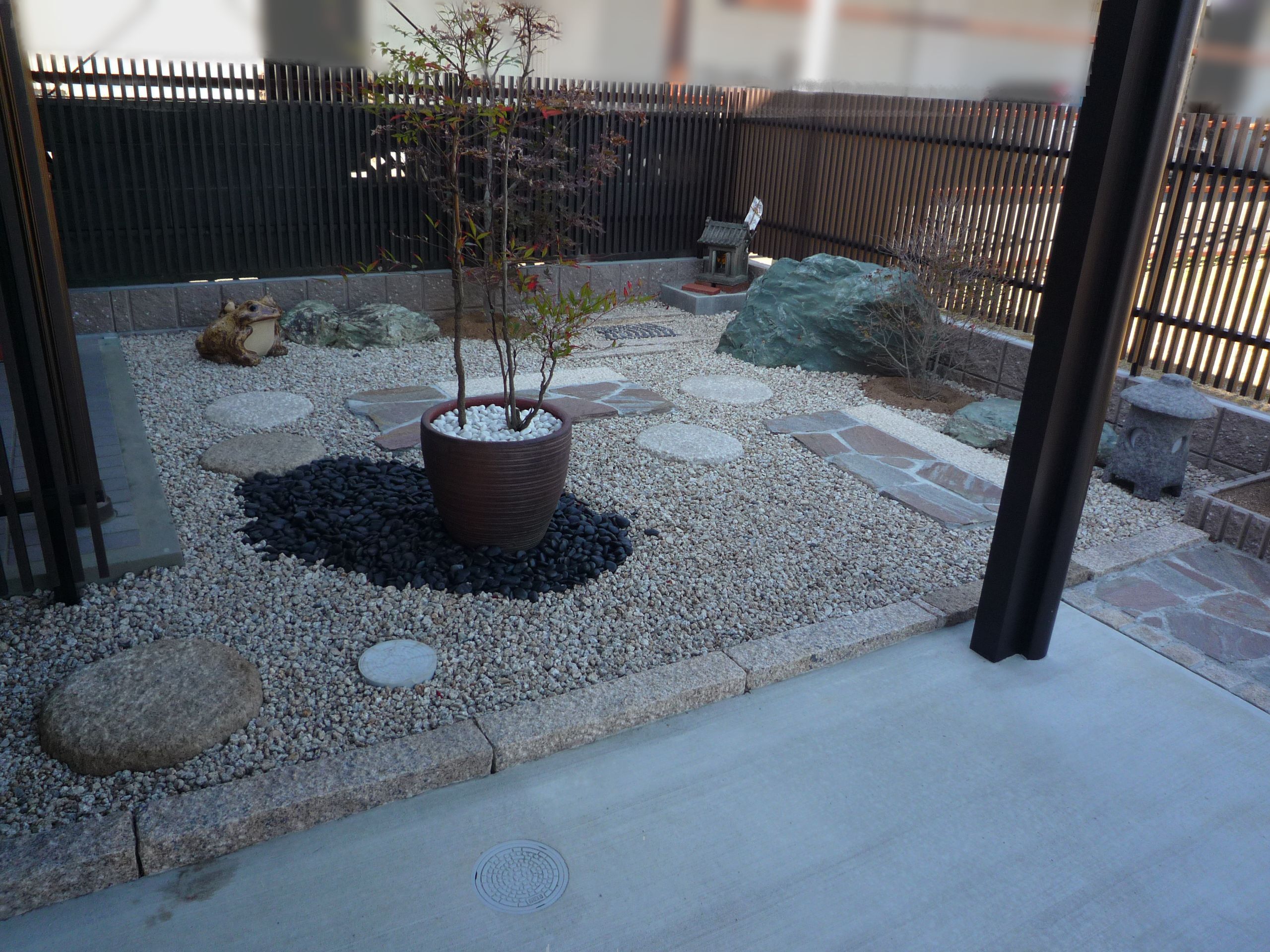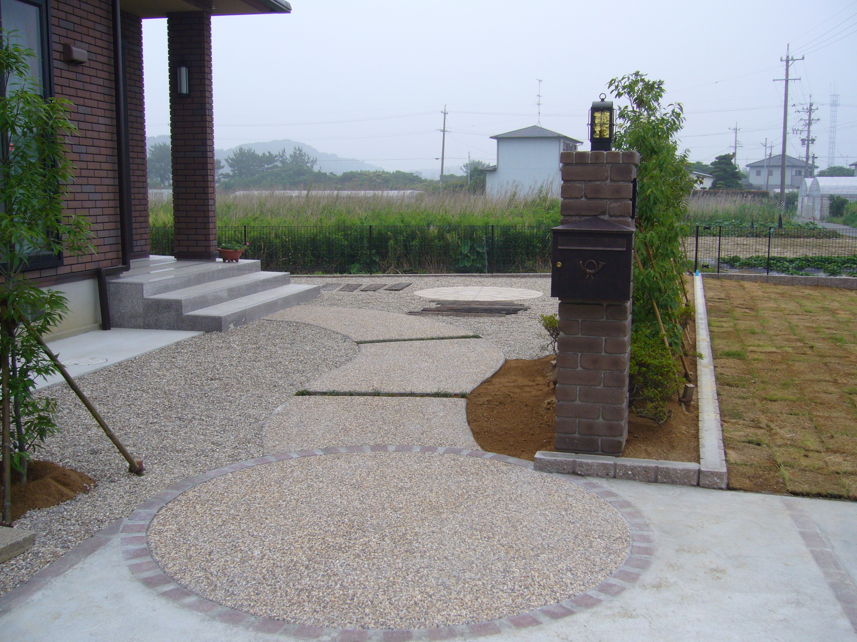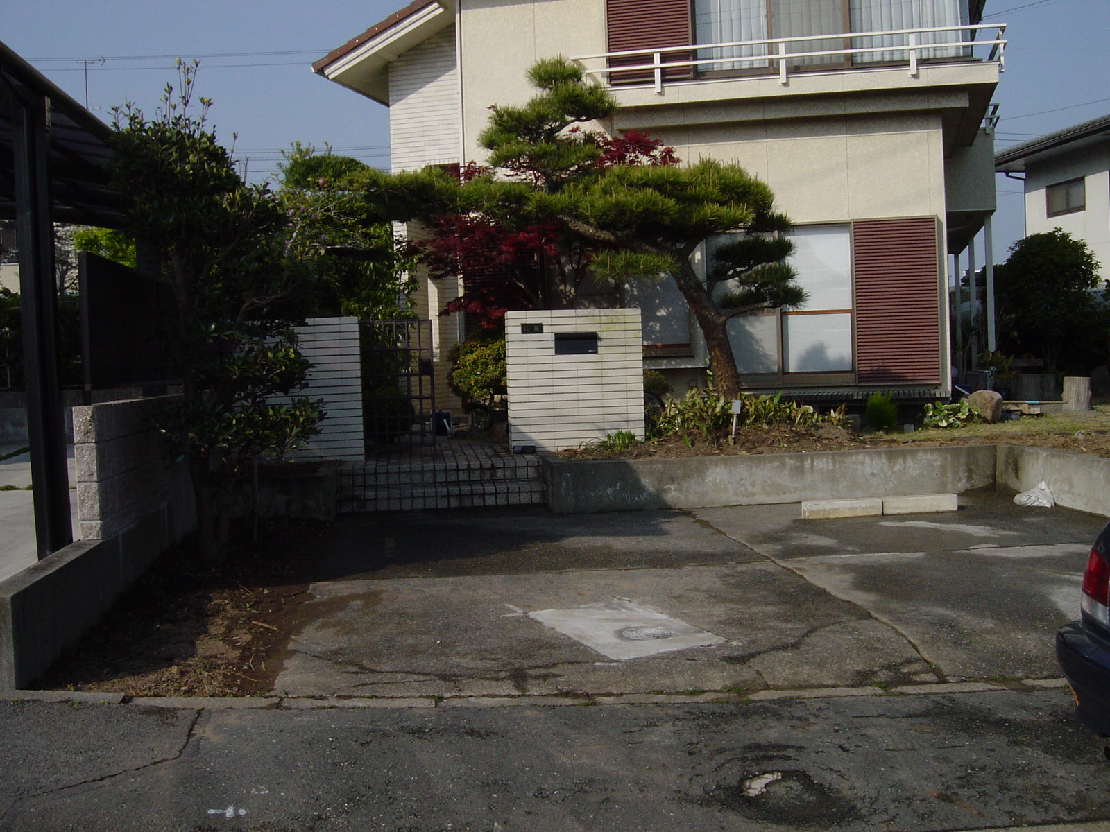 玄関前のリフォーム後にアプローチと駐車場のご相談を頂きました。和のテイストを用いた雰囲気をご要望されていましたので、全体的にシックな色調でまとめてみました。アプローチの石張りは、延べ段と飛び石のイメージで、乱形の自然石を張り石材店でオーダーした錆石を敷き並べてみました。地の神様へは錆石と[...]