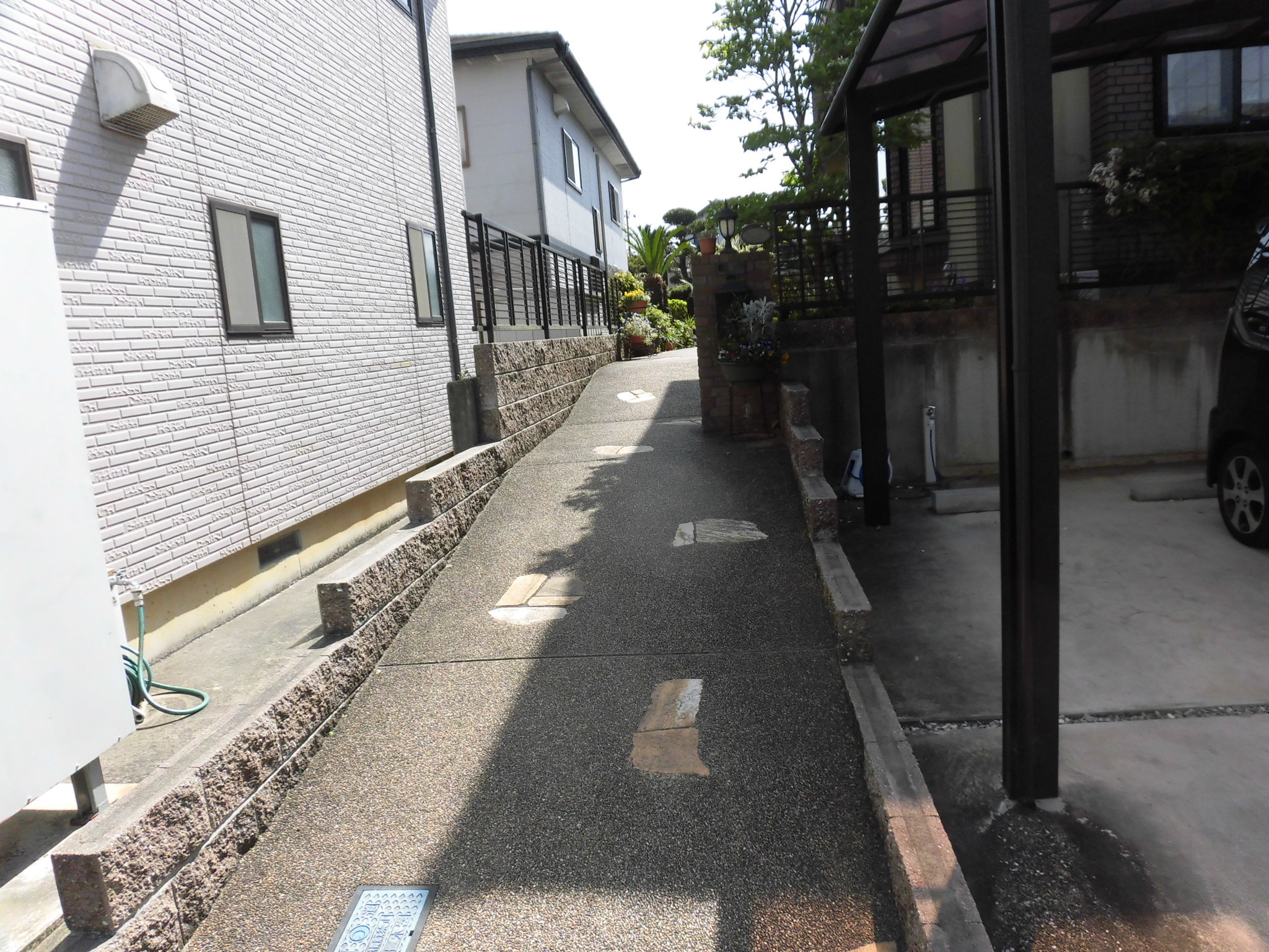 洗出しの舗装部分が年数がたった事により汚れが蓄積してしまっていました。アプローチのリフォームもお考えでしたが、洗出し舗装は気に入っていらっしゃるとの事でしたので、洗浄をご提案させて頂きました。とても綺麗になりお客さまも驚いていました。