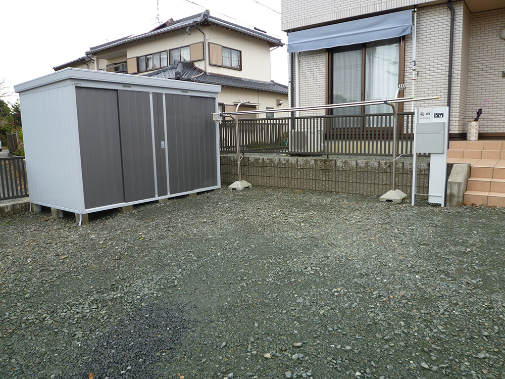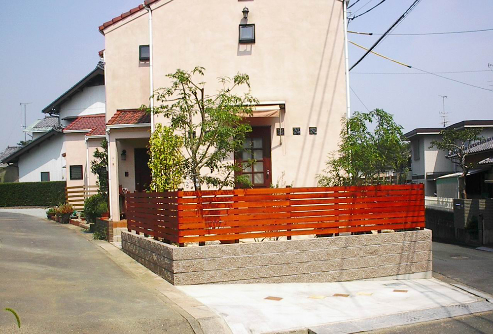 駐車場の舗装についてご相談をいただきました。“かわいらしいエクステリア”とのご要望をいただきましたので、建物の外観に合わせてピンク色の乱形の自然石を花びら状に散らし、玄関廻りにはサークル状に張ってアクセントにしてみました。道路との勾配があり、傾斜の背になる部分にはインターロッキングでライ[...]