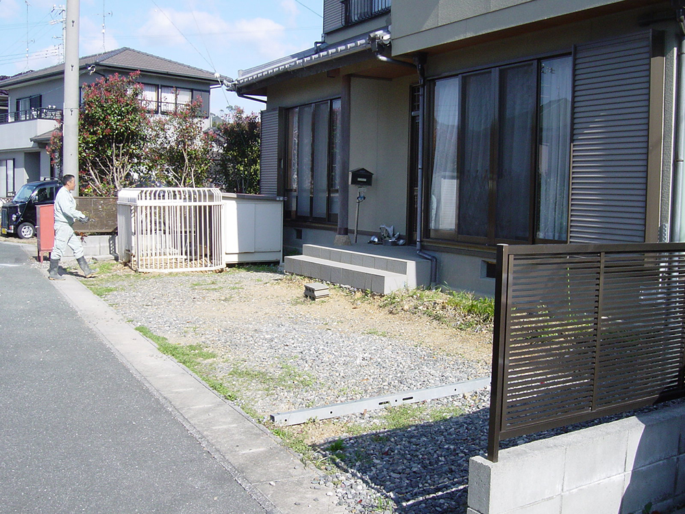 お庭のリフォームのご相談を頂きました。既存のブロック塀と植栽を全て撤去して、駐車場の拡大工事を行いました。オープンな駐車場になった為、見晴らしもよく、使い勝手が向上しました。
