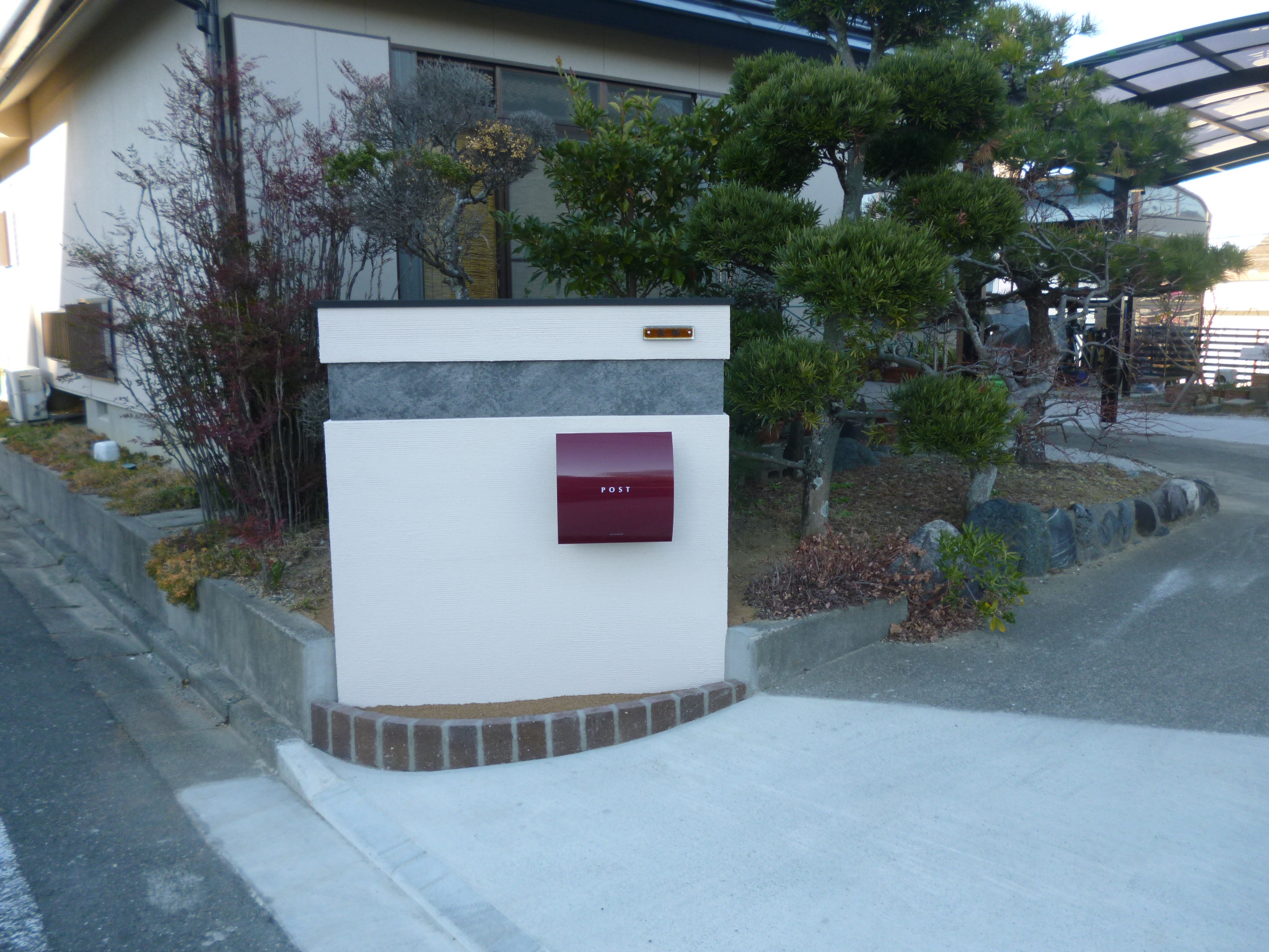 2018/06/08 和の雰囲気が似合うお宅のオブジェを作成させていただきました。塗り壁の間には石板で模様を付けました。落ち着いた空気を残しながらも、深い赤色のポストが目を引く和モダンなオブジェになりました。 お問い合わせはこちら