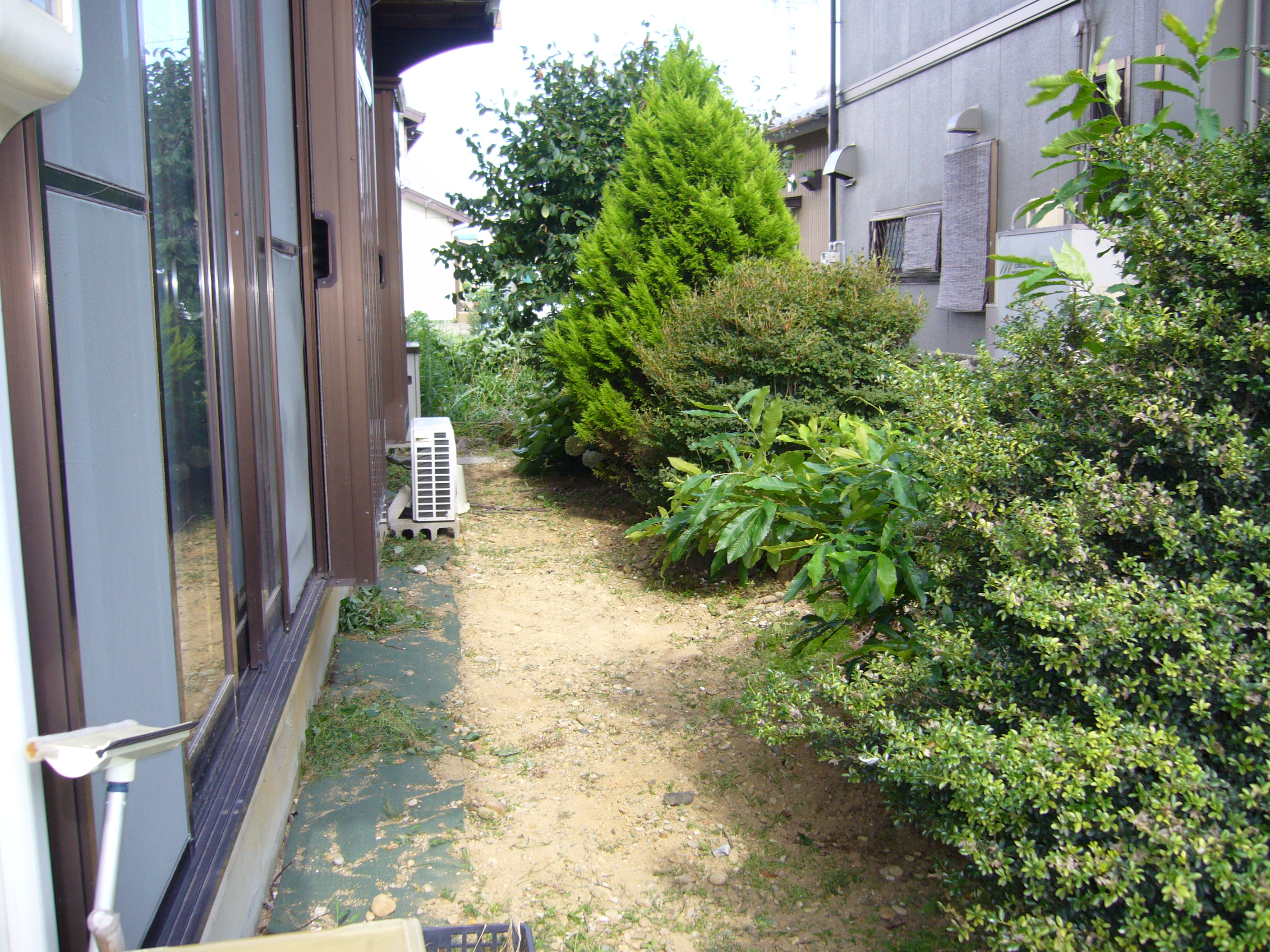 5種類ぐらいの樹木が生い茂っていたご自宅の洋間の前に、ウッドデッキを置きました。樹木を取り除いたのでデッキスペースが広く取れました。